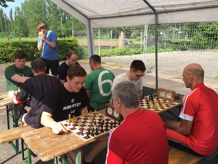 Heute fand das erste Schachball-Turnier der fuß brothers statt. Bei schönstem Wetter trafen sich 3 Teams auf den Göschwitzer Platz und spielten in den Disziplinen Blitzschach und Fußball den Sieger aus. Dabei wurde doppelrundig jeder gegen jeden gespielt.